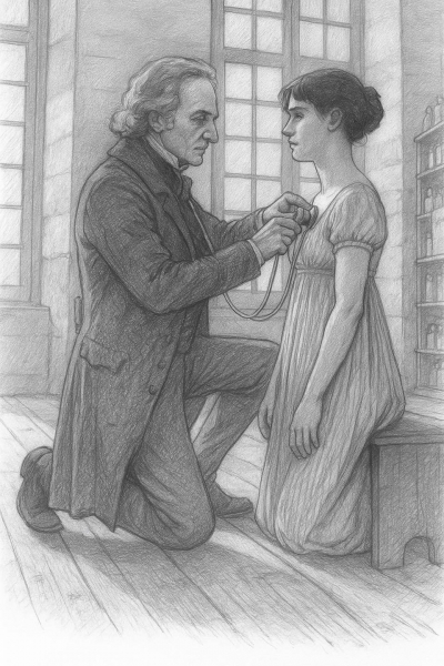 În anul 1816, un medic francez pe nume René-Théophile-Hyacinthe Laënnec lucra la spitalul Necker din Paris. Era un doctor cunoscut pentru seriozitatea și respectul său față de pacienți. Într-o zi, o tînără femeie a venit la el acuzînd dureri în piept și dificultăți de respirație. Laënnec trebuia să-i asculte inima, dar, în acea vreme, doctorii făceau asta lipindu-și urechea direct de pieptul bolnavului — o metodă comună, dar stînjenitoare, mai ales cînd pacientul era o femeie.