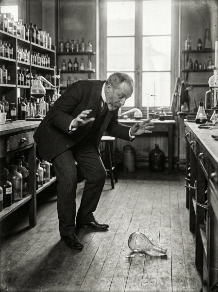 În 1903, chimistul Édouard Bénédictus a scăpat accidental un flacon de sticlă pe podea și a observat uimit că, deși s-a crăpat, sticla nu s-a împrăștiat în cioburi, ci a rămas lipită în forma originală. Flaconul conținuse nitrat de celuloză, care se evaporase lăsînd o peliculă transparentă și elastică pe interior. Această greșeală fericită a dus la inventarea sticlei laminate (securizate), folosită astăzi la parbrizele mașinilor pentru a nu ne tăia în caz de accident.